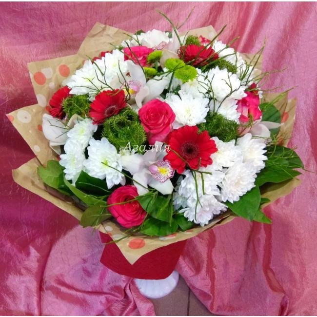 Всё на высоте! Вежливые менеджеры, быстрая доставка, свежие цветы! Букет потрясающий, спасибо вам огромное за хорошее настроение!