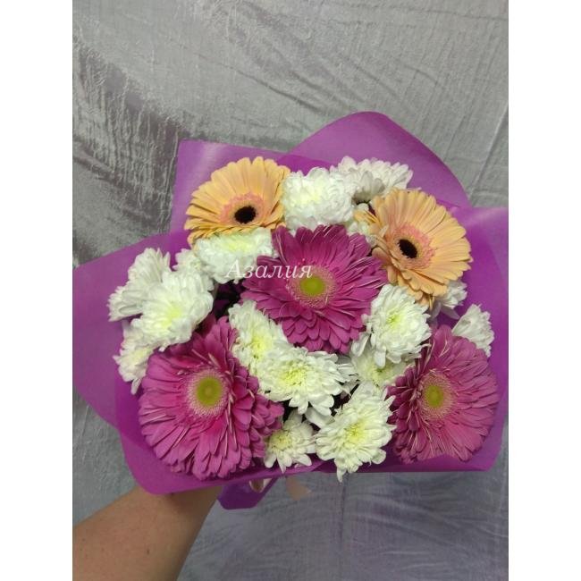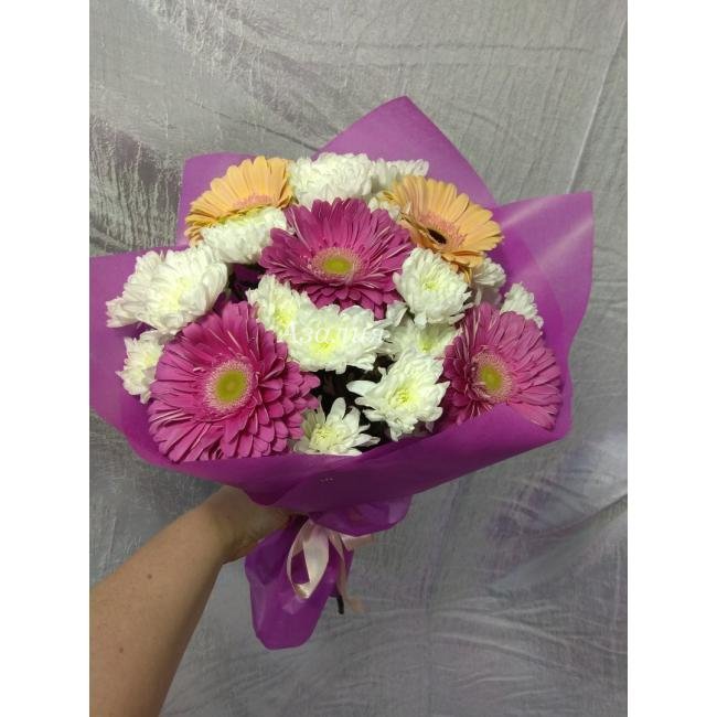 Спасибо за прекрасный сервис, букет доставили вовремя, цветы прекрасные!