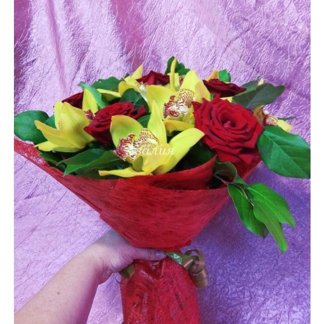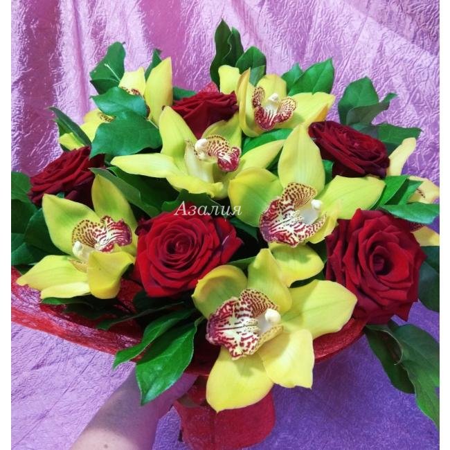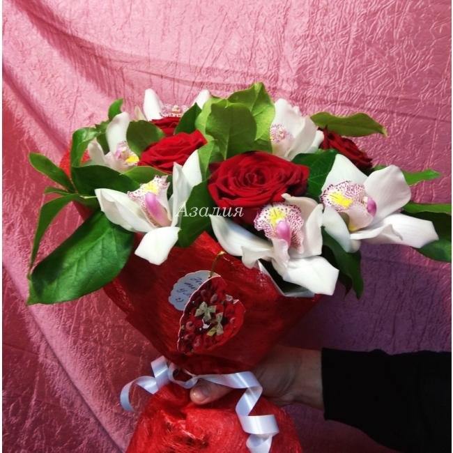 Розы и орхидеи - лучшее сочетание, которое можно выбрать для букета! Цвет орхидеи уточняйте у менеджера