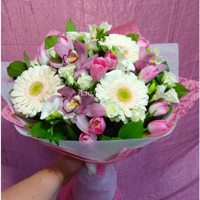 Заказывала букет маме на День Рождение. Цветы очень красивые, букет большой) маме очень понравился. Доставили быстро. Спасибо магазину и отдельно Евгении!