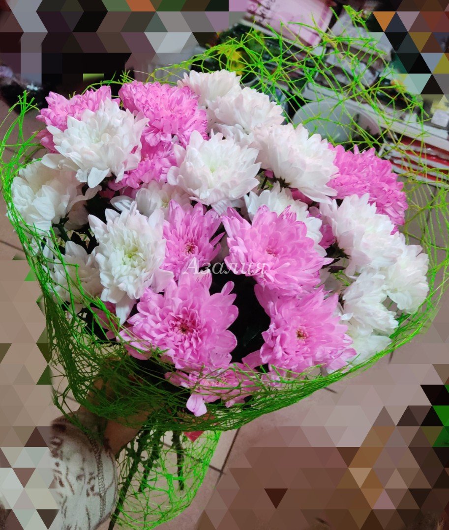 Монобукет «Белые и розовые хризантемы»