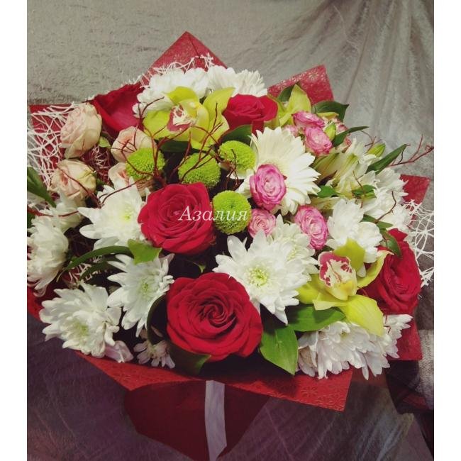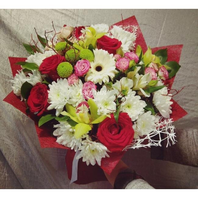 Недавно заказывали у вас композицию, доставка пришла вовремя, цветы стояли долго и радовали нас своей красотой!