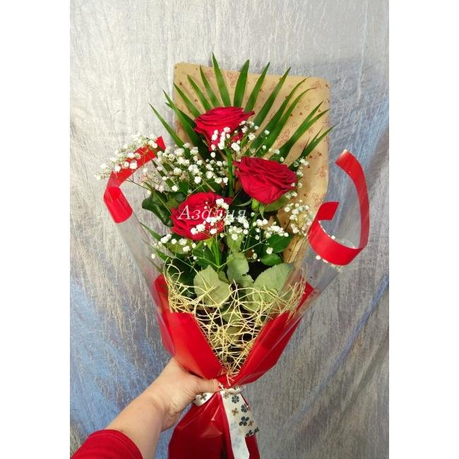Три розы в стильной упаковке