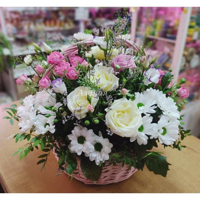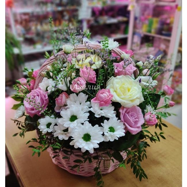 Цветочная композиция в корзине прекрасно подойдёт для любого праздника