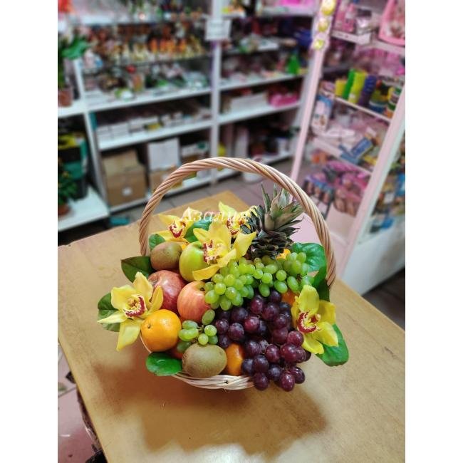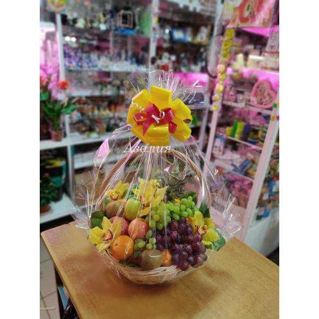 Корзина с орхидеями и фруктами