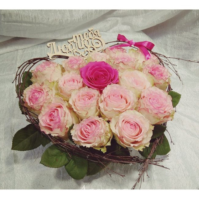 Недавно заказывали у вас композицию, доставка пришла вовремя, цветы стояли долго и радовали нас своей красотой!